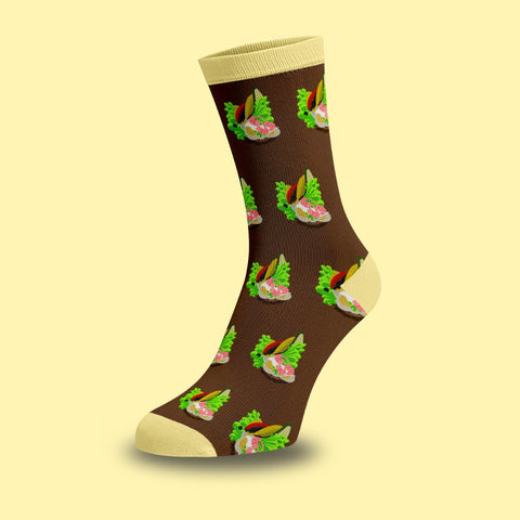 Vi designer sokker med et glimt i øjet og masser af dansk charme — fra smørrebrød til æbleskiver.